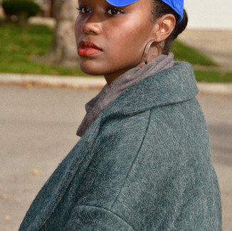 We out here making casual look fly y'all! Okay in all seriousness though, I absolutely love a "casual slay," taking very simple pieces and putting them together in just the right way can produce some really great looks. Here, we have a combination of classic pieces elevated by their design: the turtleneck sweater dress is edgy due to the inverted seams, slouchy neckline, and keyhole above the chest; the mohair jacket is instantly attractive in its oversized fit and deep slate blue tone; the classic style sneakers are enhanced by a richness of color; finally, the baseball cap, simple and bold.